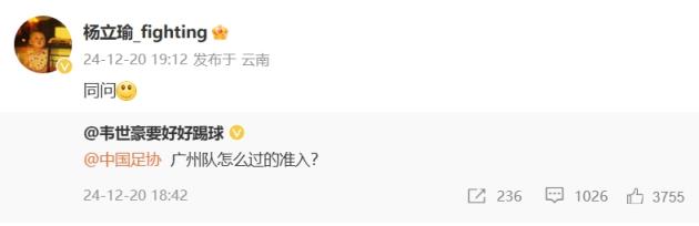 又來一個! 楊立瑜轉(zhuǎn)發(fā)韋世豪微博:同問,廣州怎么過的準(zhǔn)入?